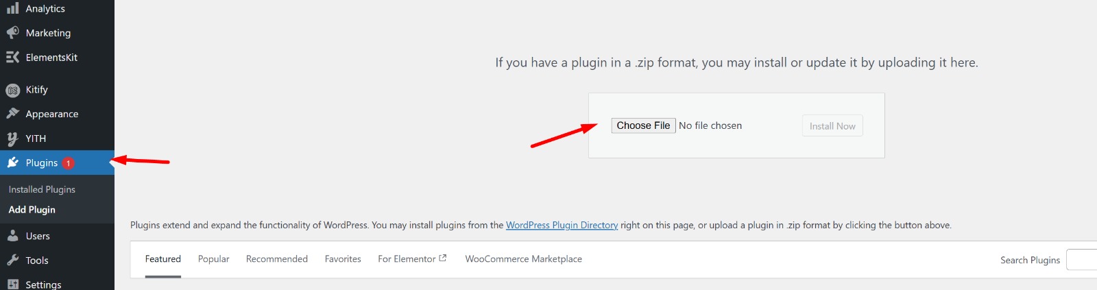 Navigate to Plugins → Add New